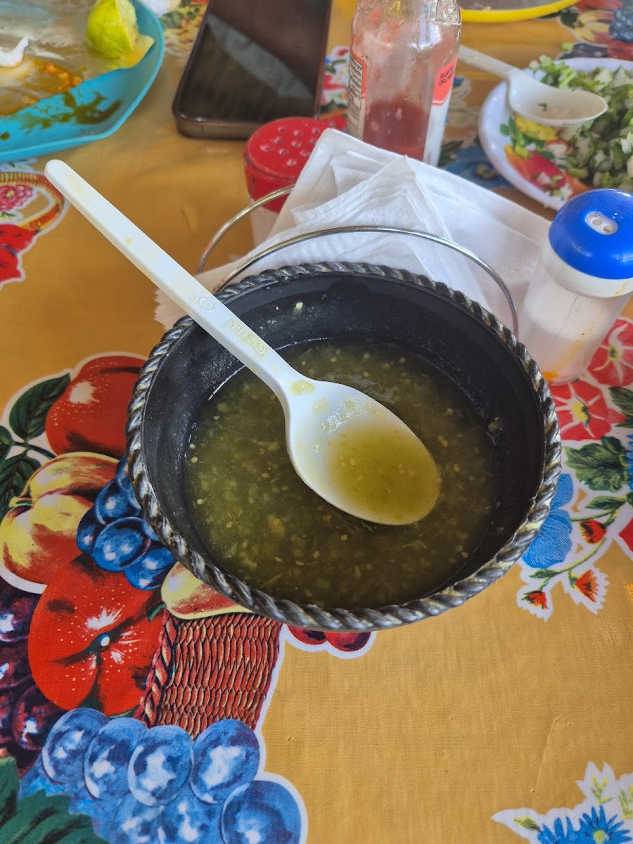 Con 2 tacos vas bien de desayuno, el consome chico para 1 persona está bien, todo muy rico, recomiendo la salsa verde, no pica mucho y tiene buen sabor